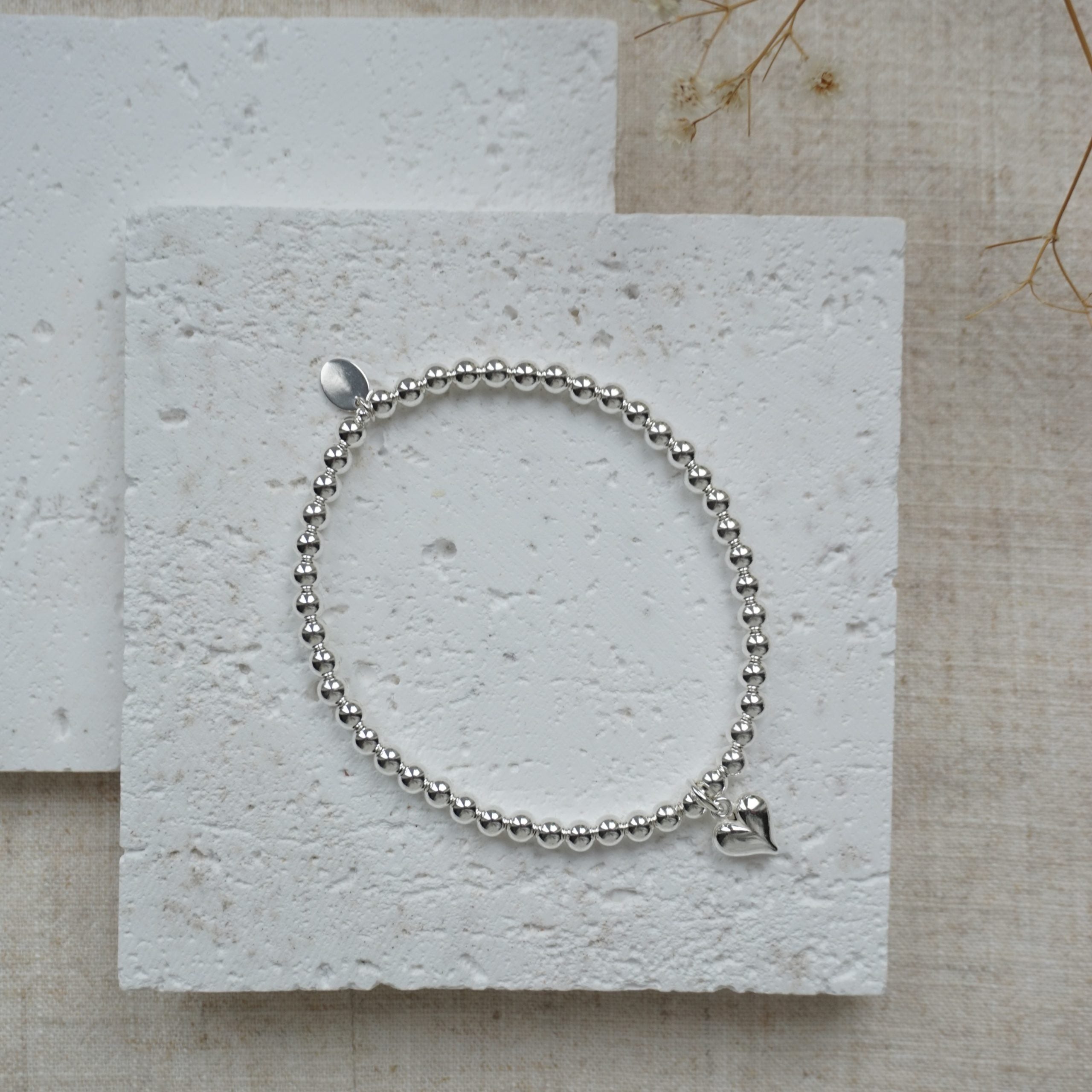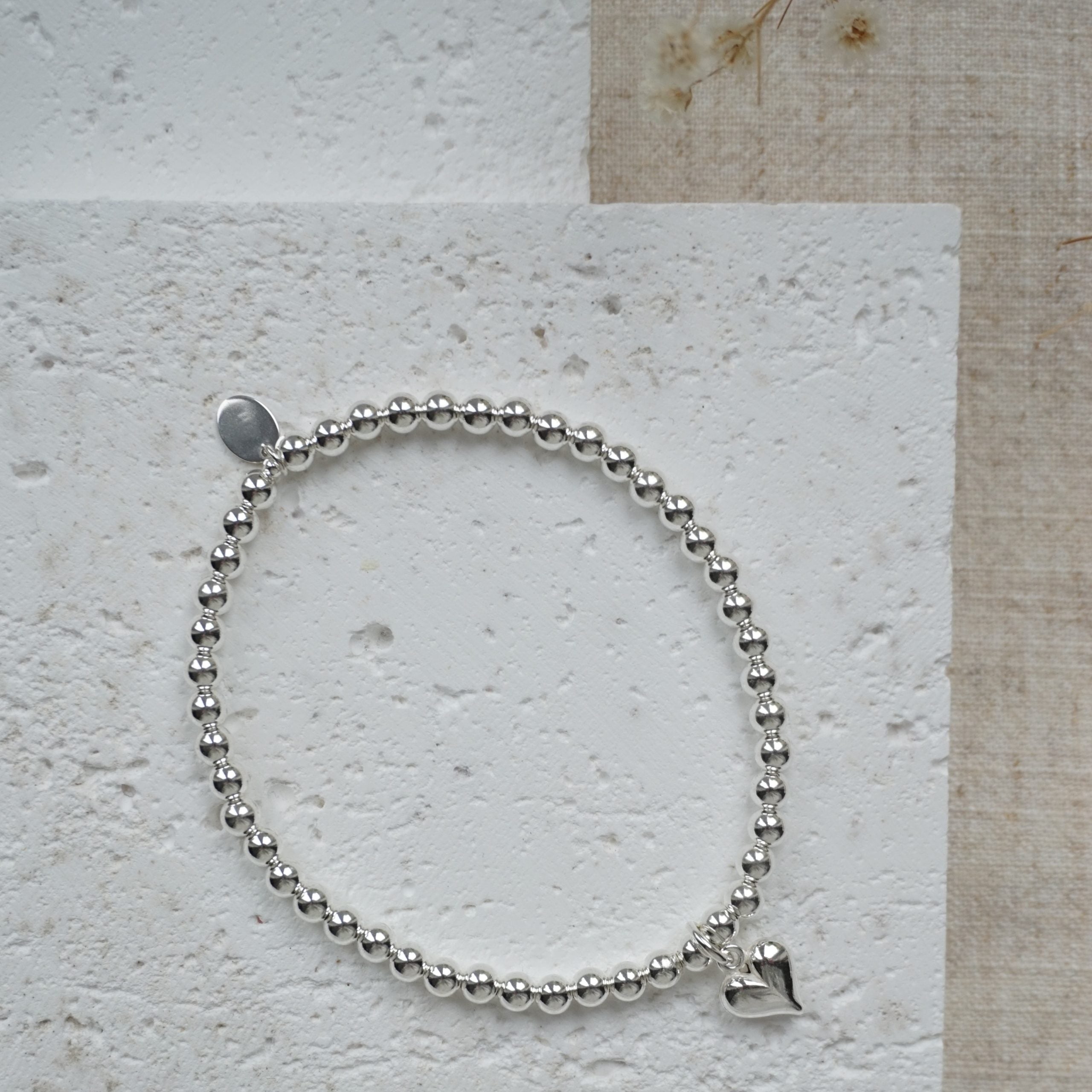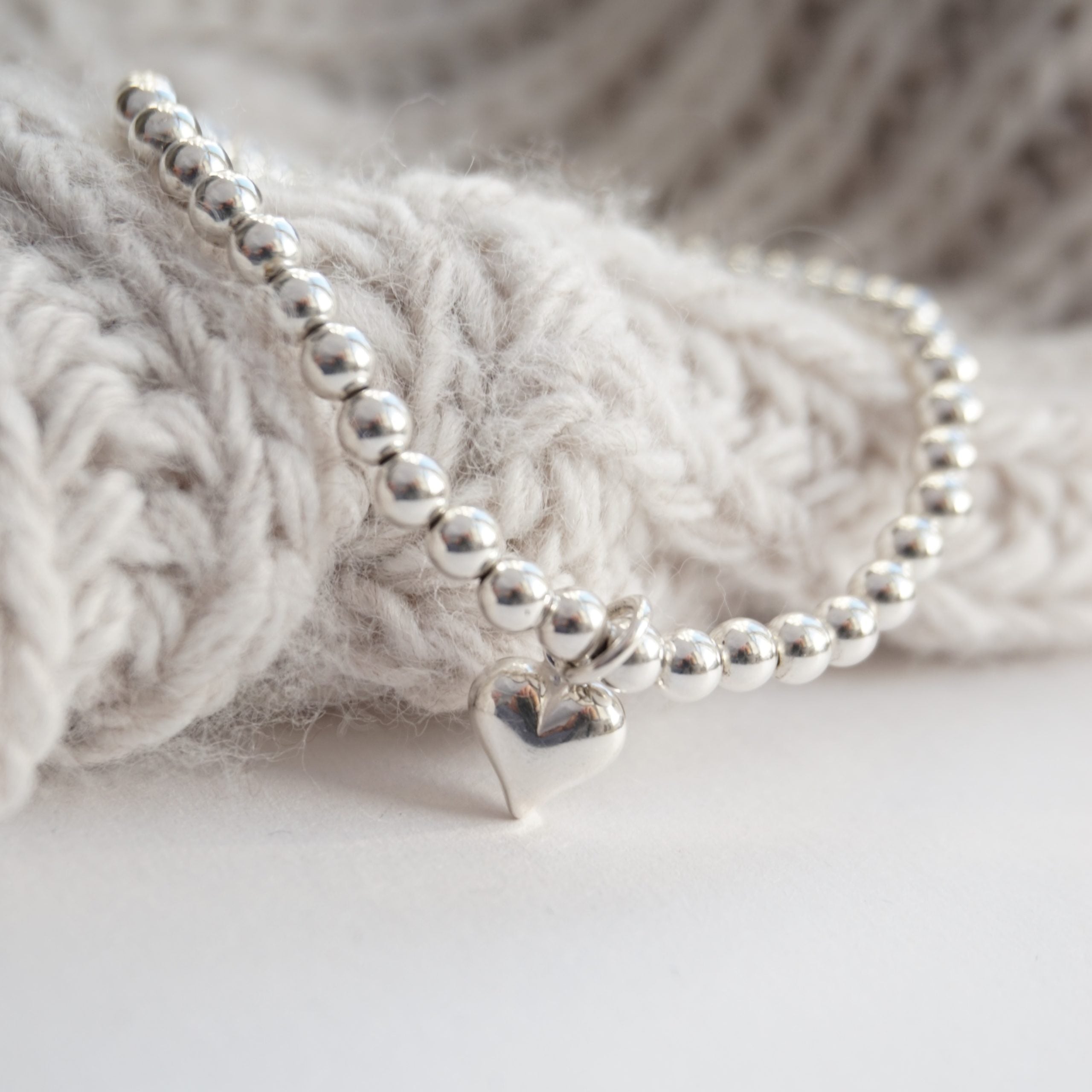 Length – approx. 17.9 cm. Beads – 4mm. Heart charm – 8mm.