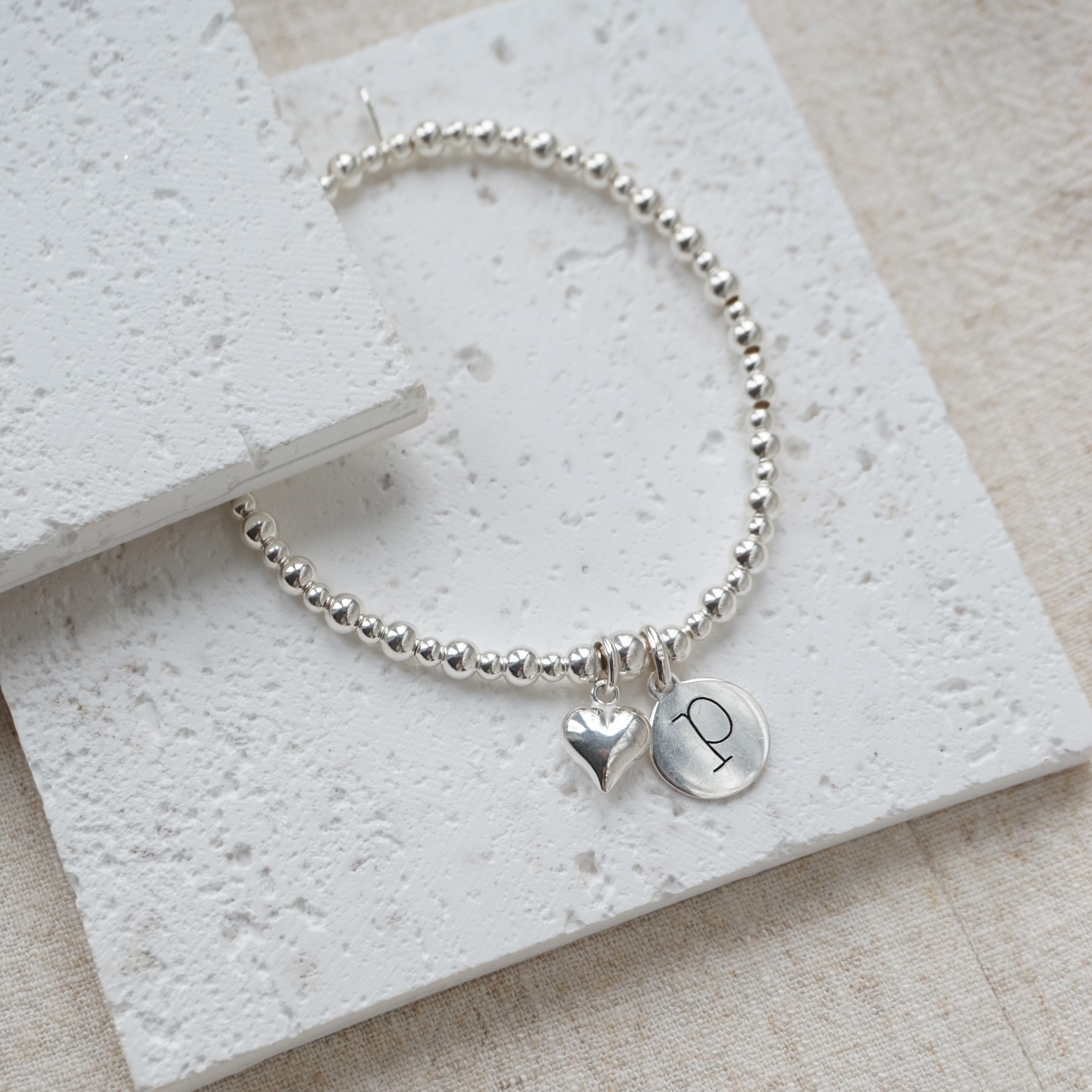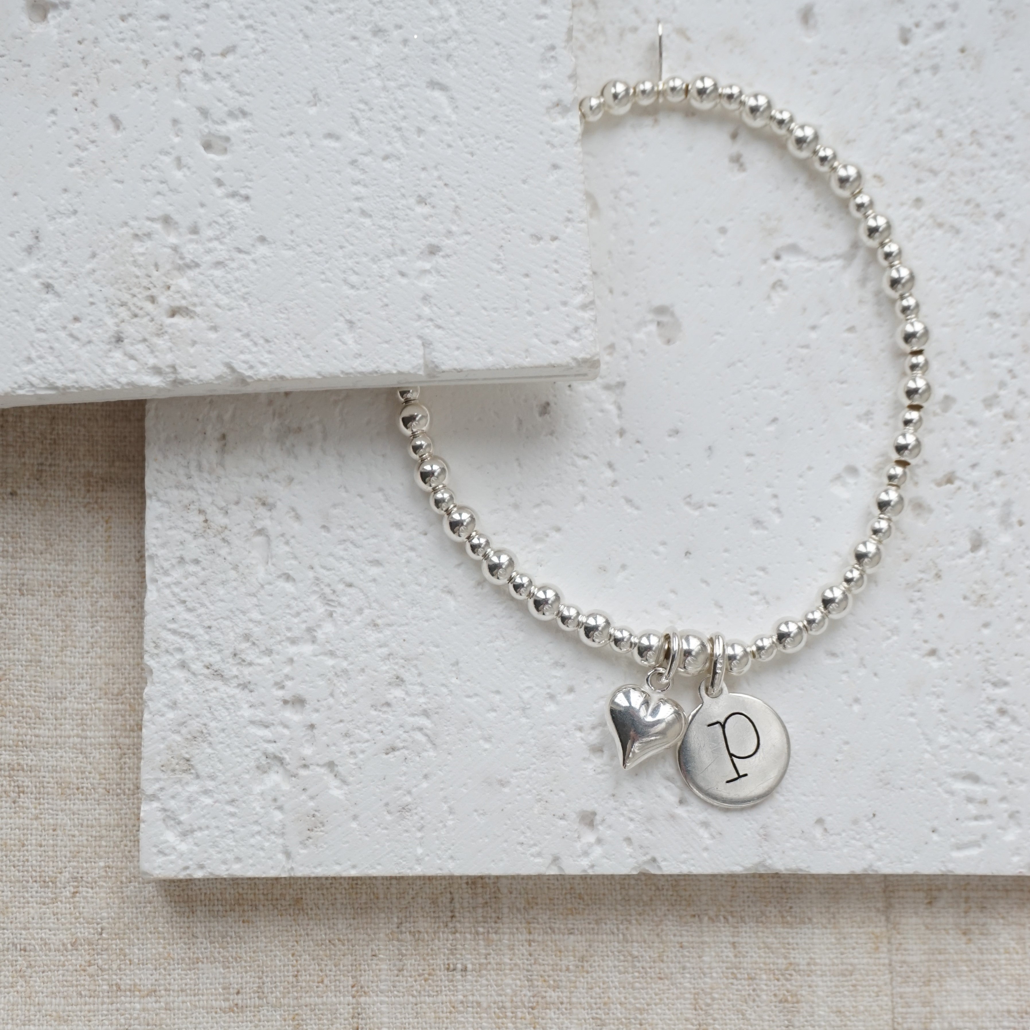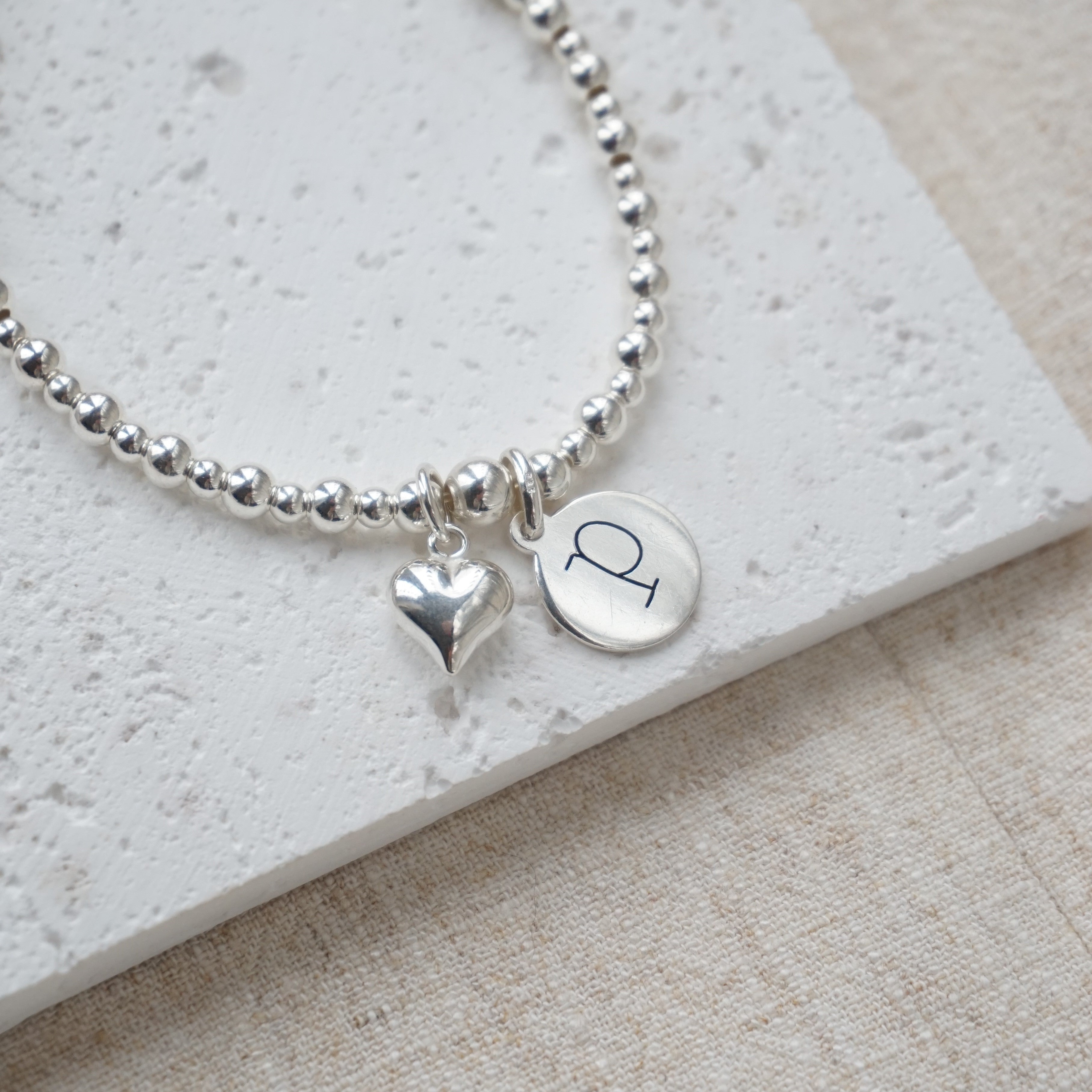 Sterling Silver Lowercase Initial and Heart Bracelet