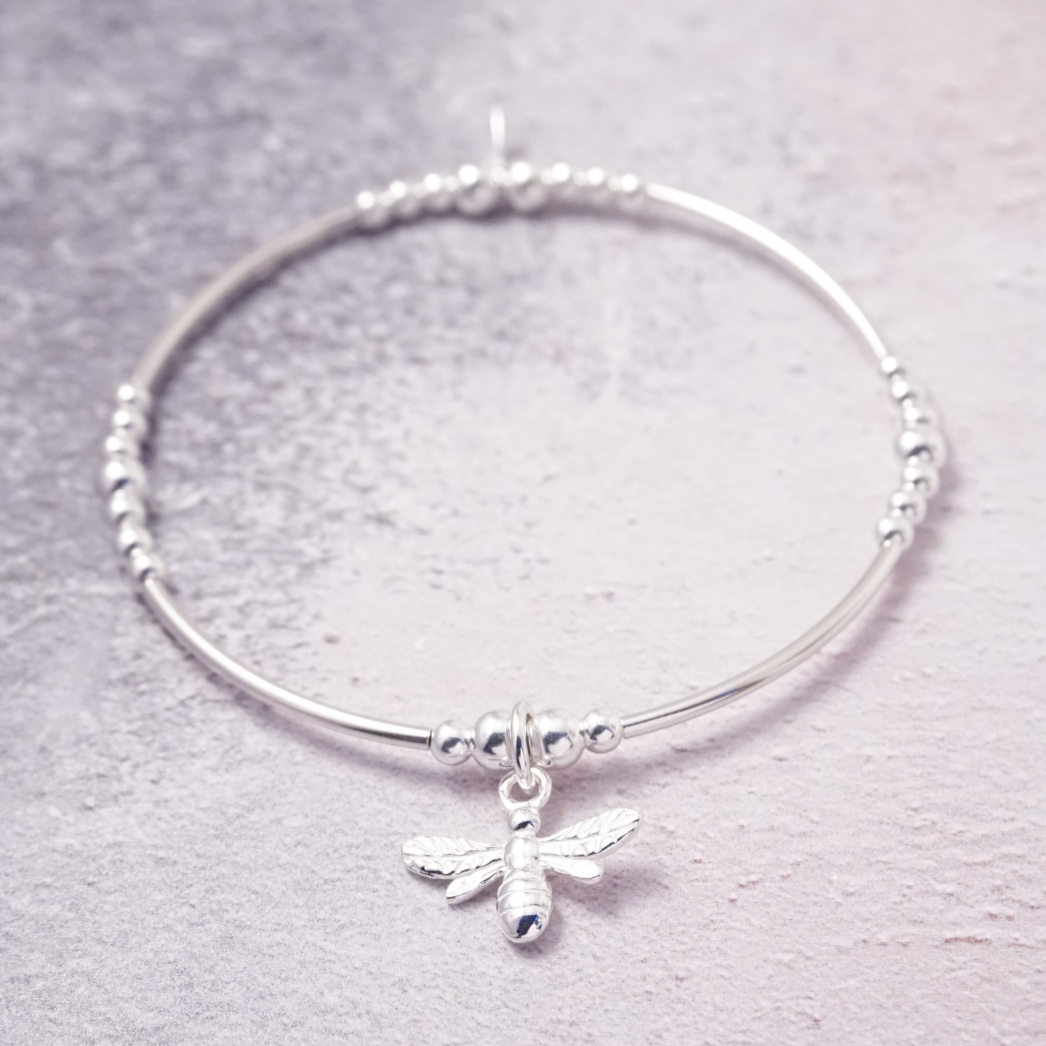 Sterling Silver Noodle Bracelet with Bumble Bee Charm
