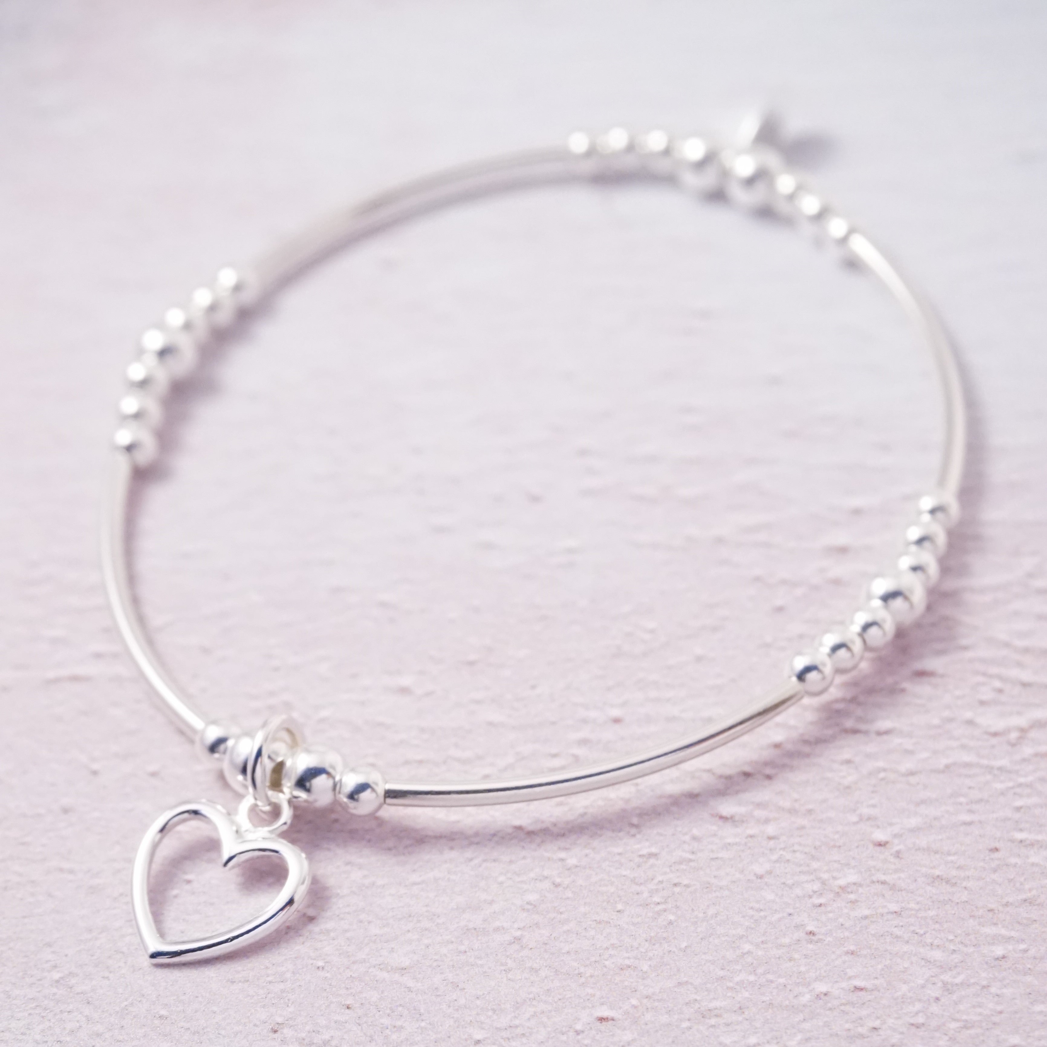 Sterling Silver Noodle Bracelet with Open Heart Charm