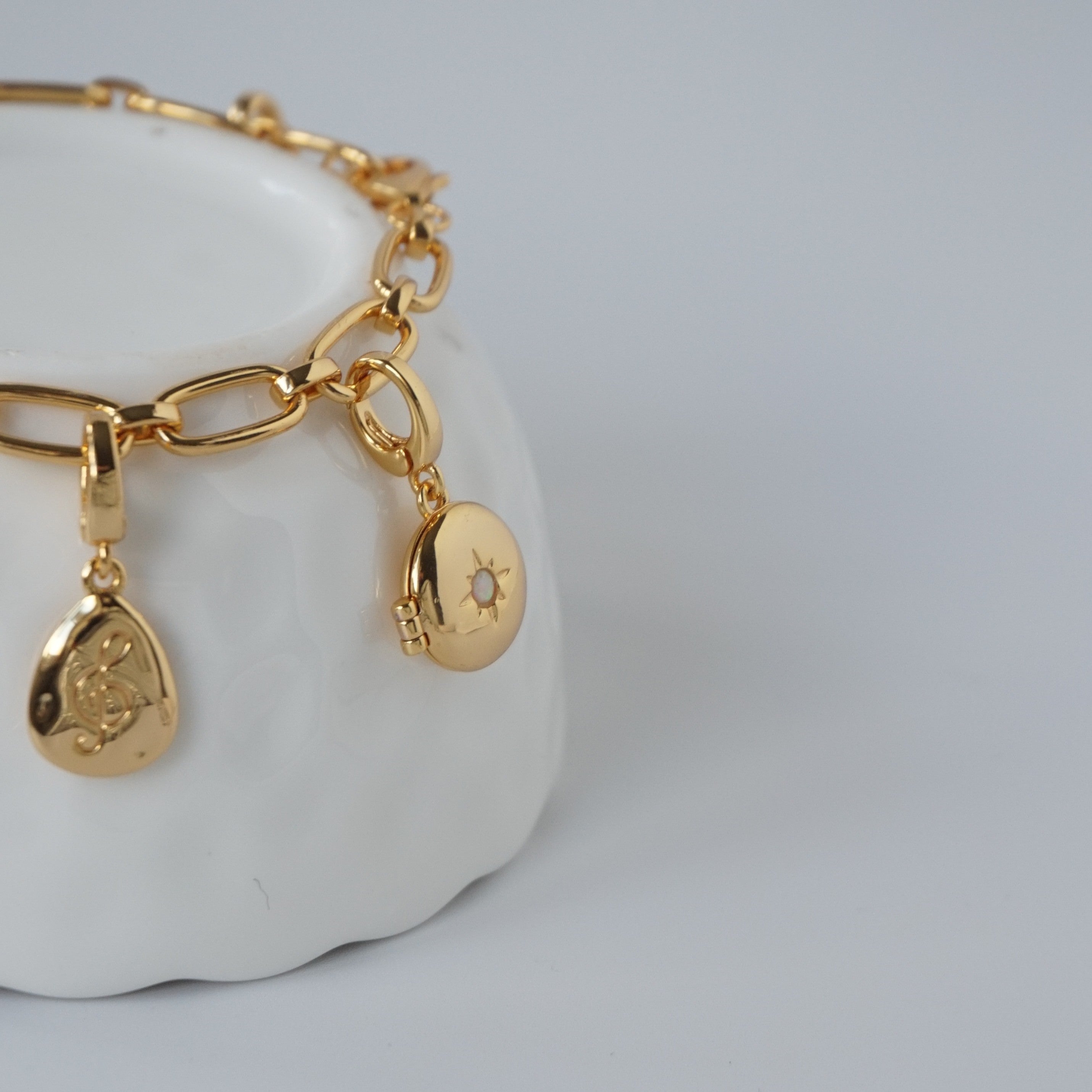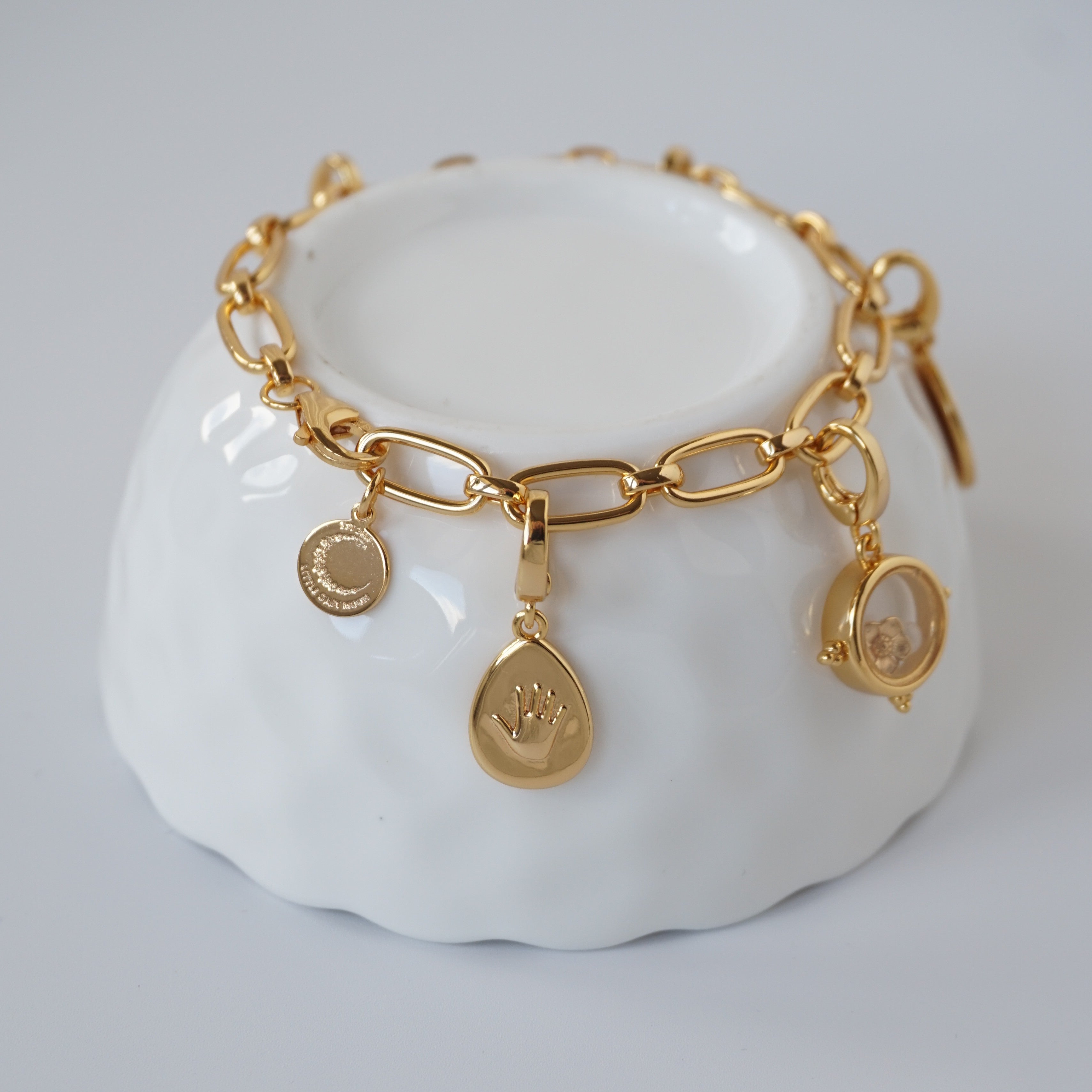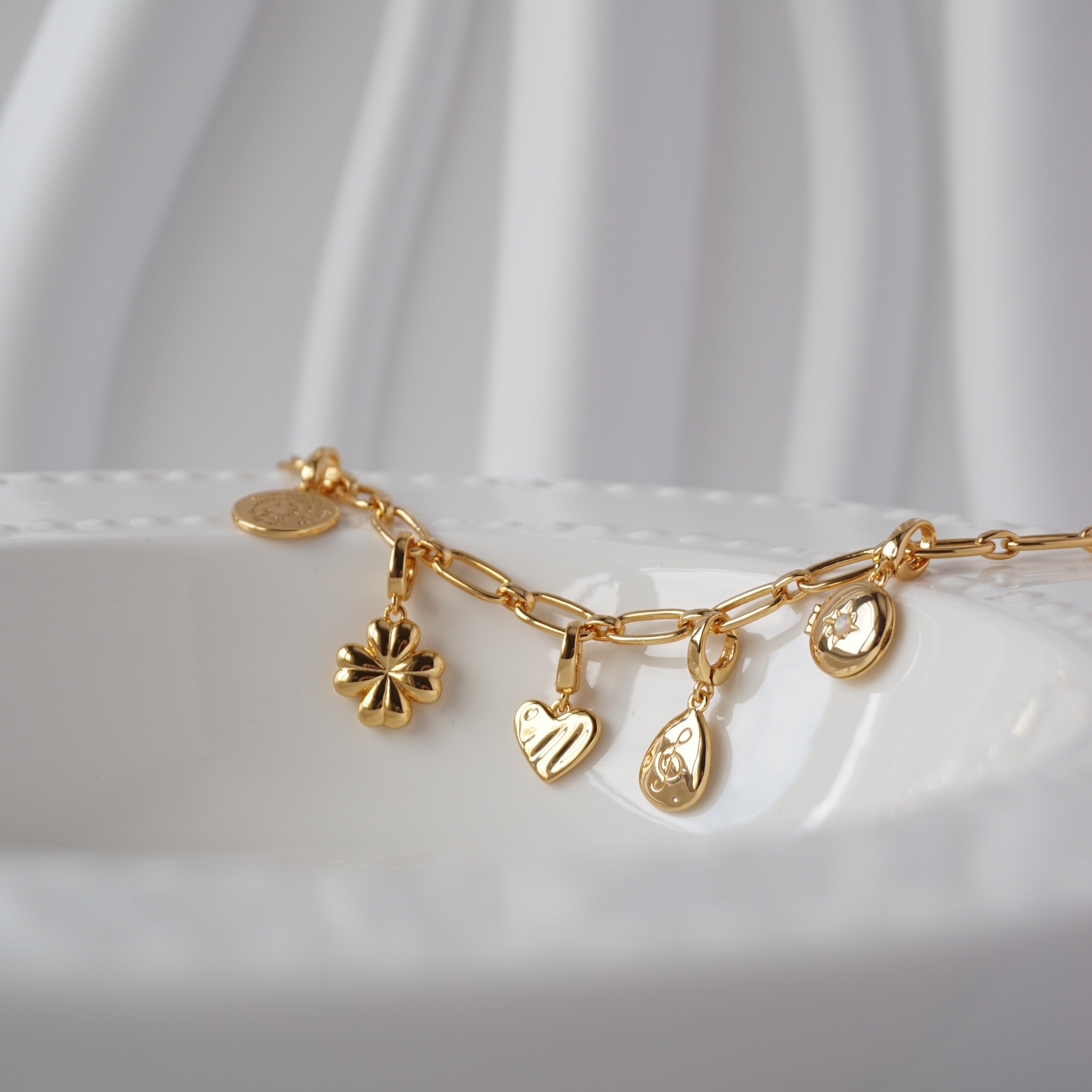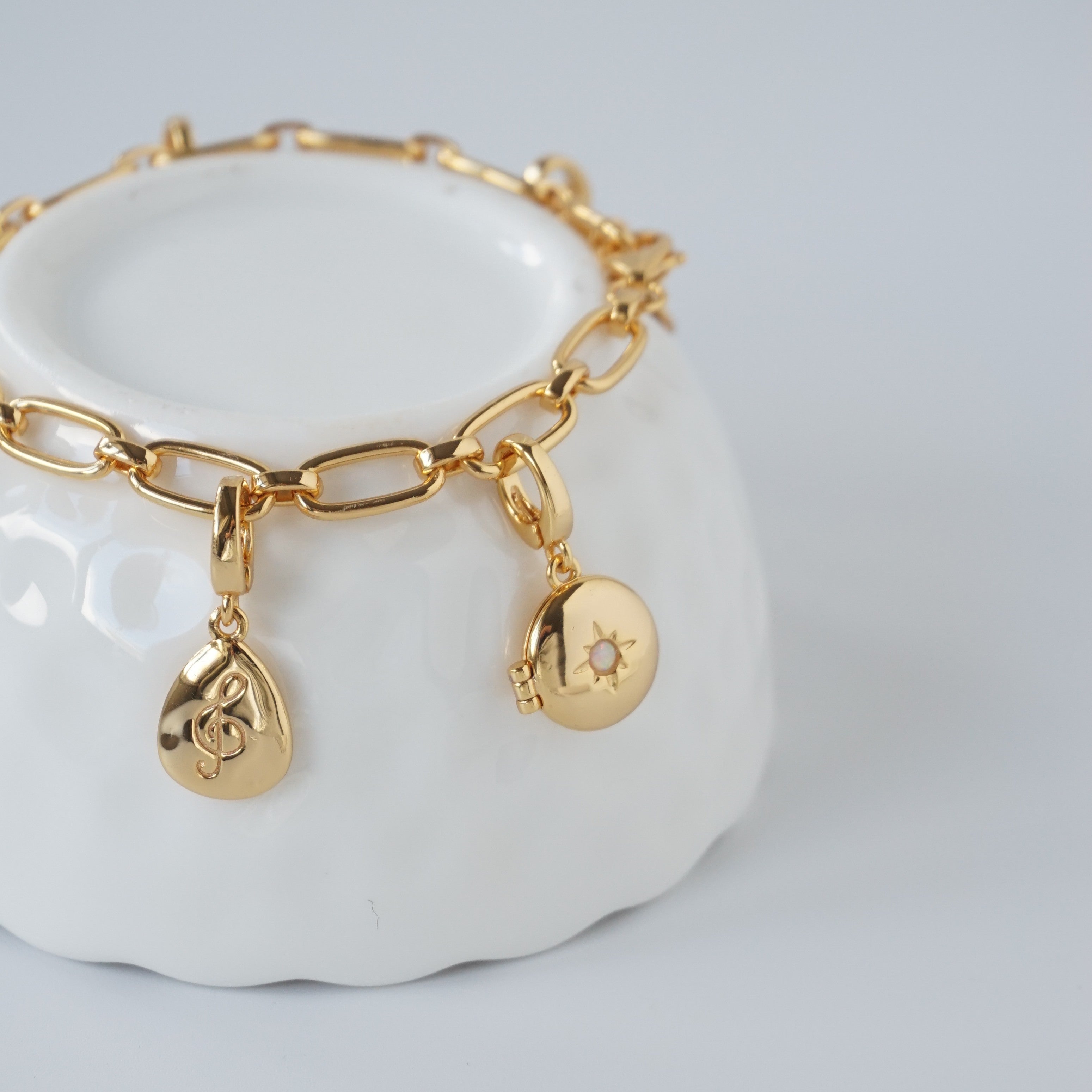 Add charms that represent your memories, milestones, or loved ones, each one telling part of your story. All charms are attachable with our clip on clasp system, so you can mix, match and rearrange them whenever you like.