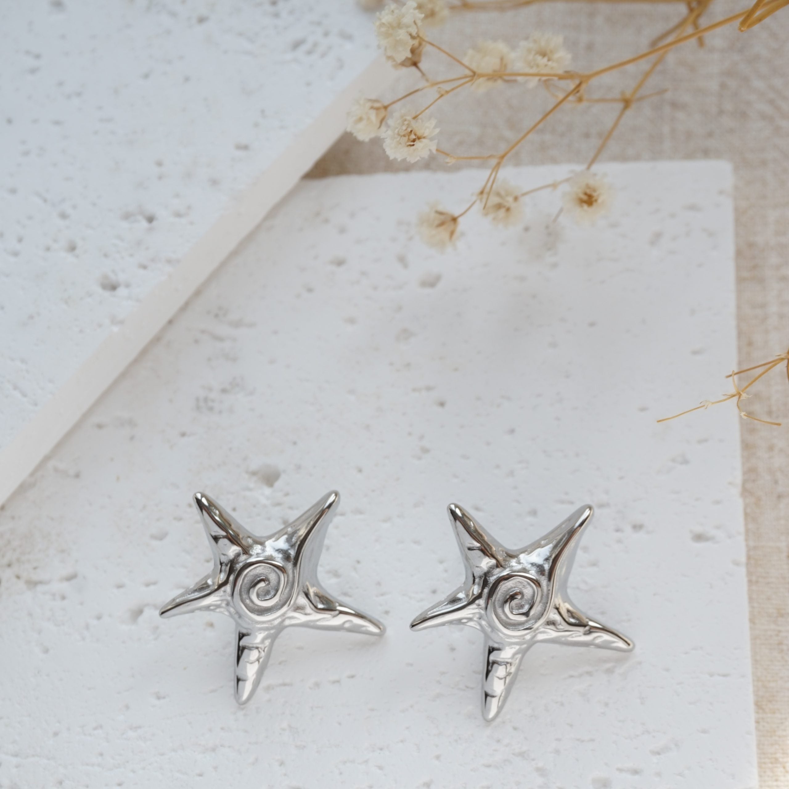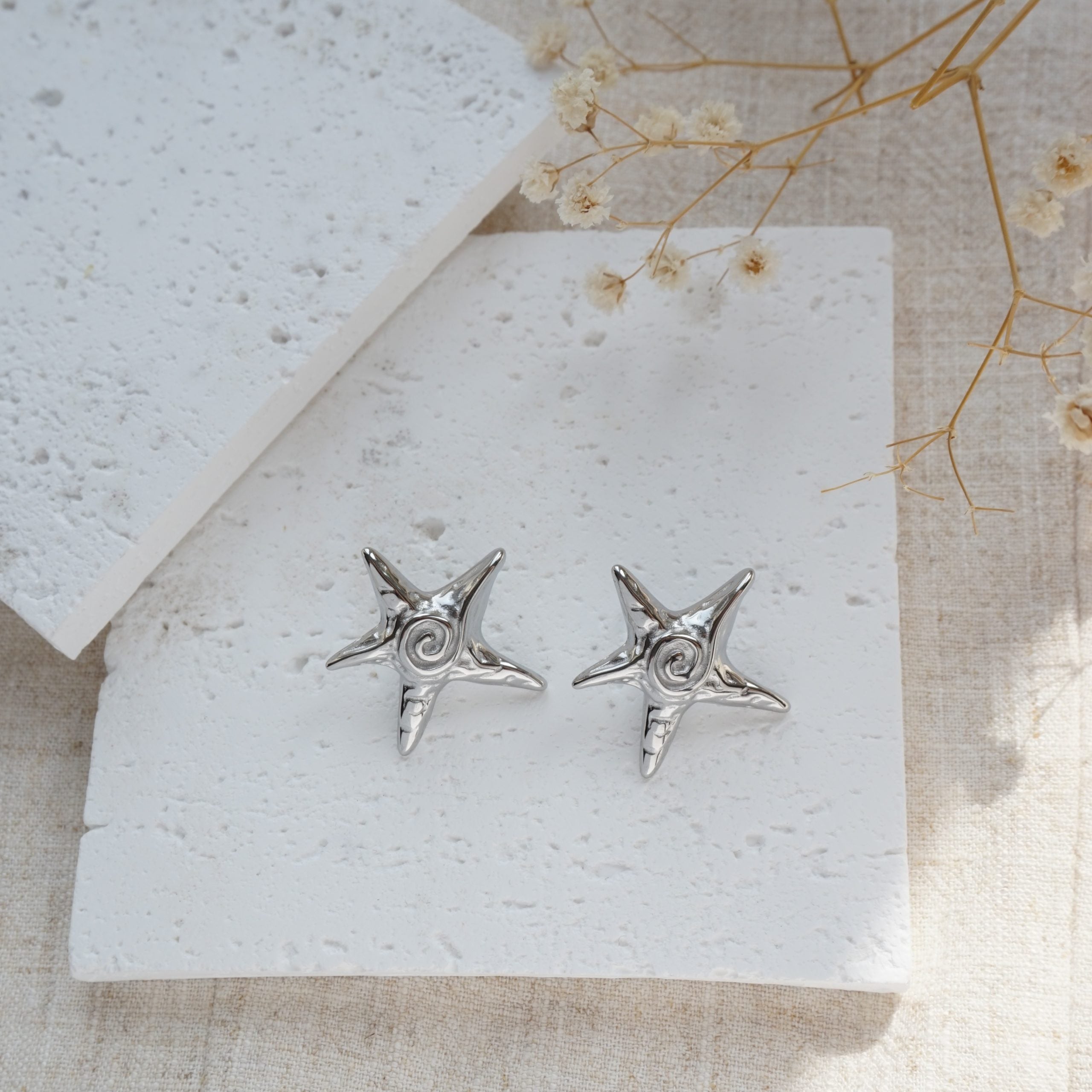 Silver Starfish Stud Earrings