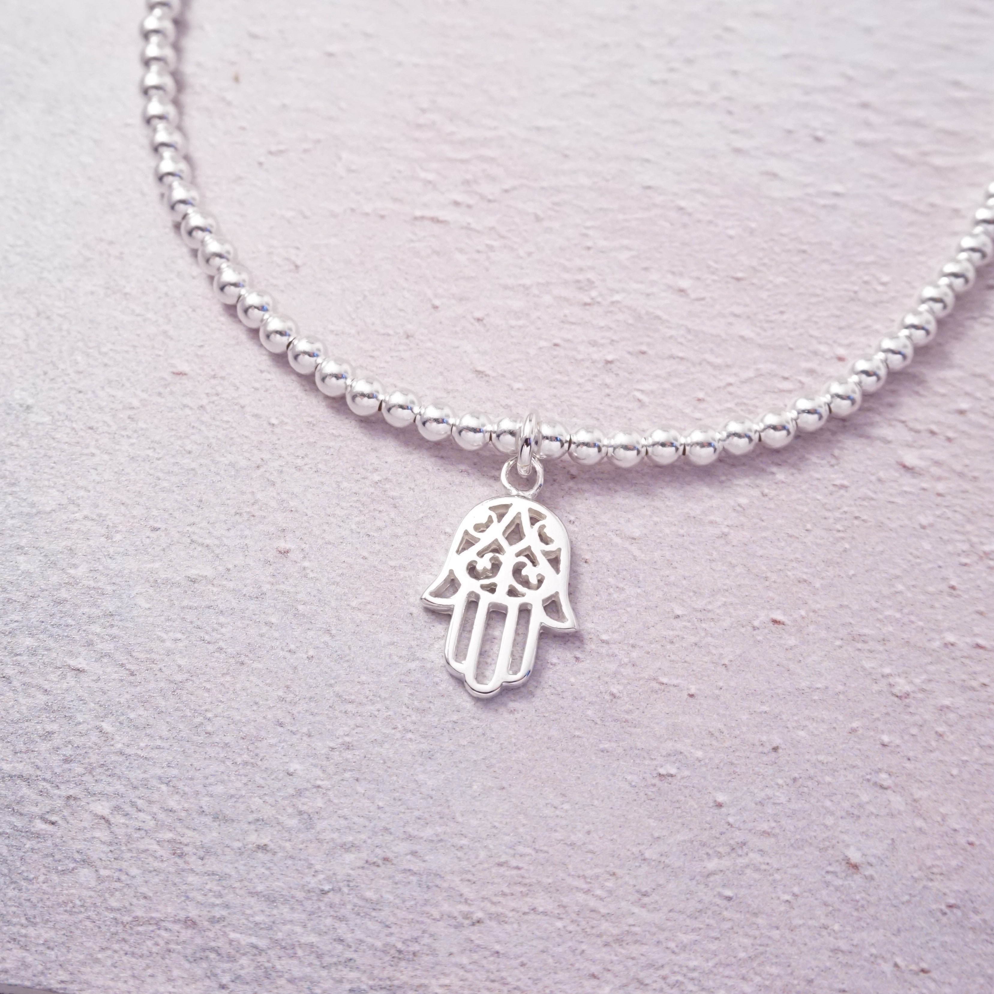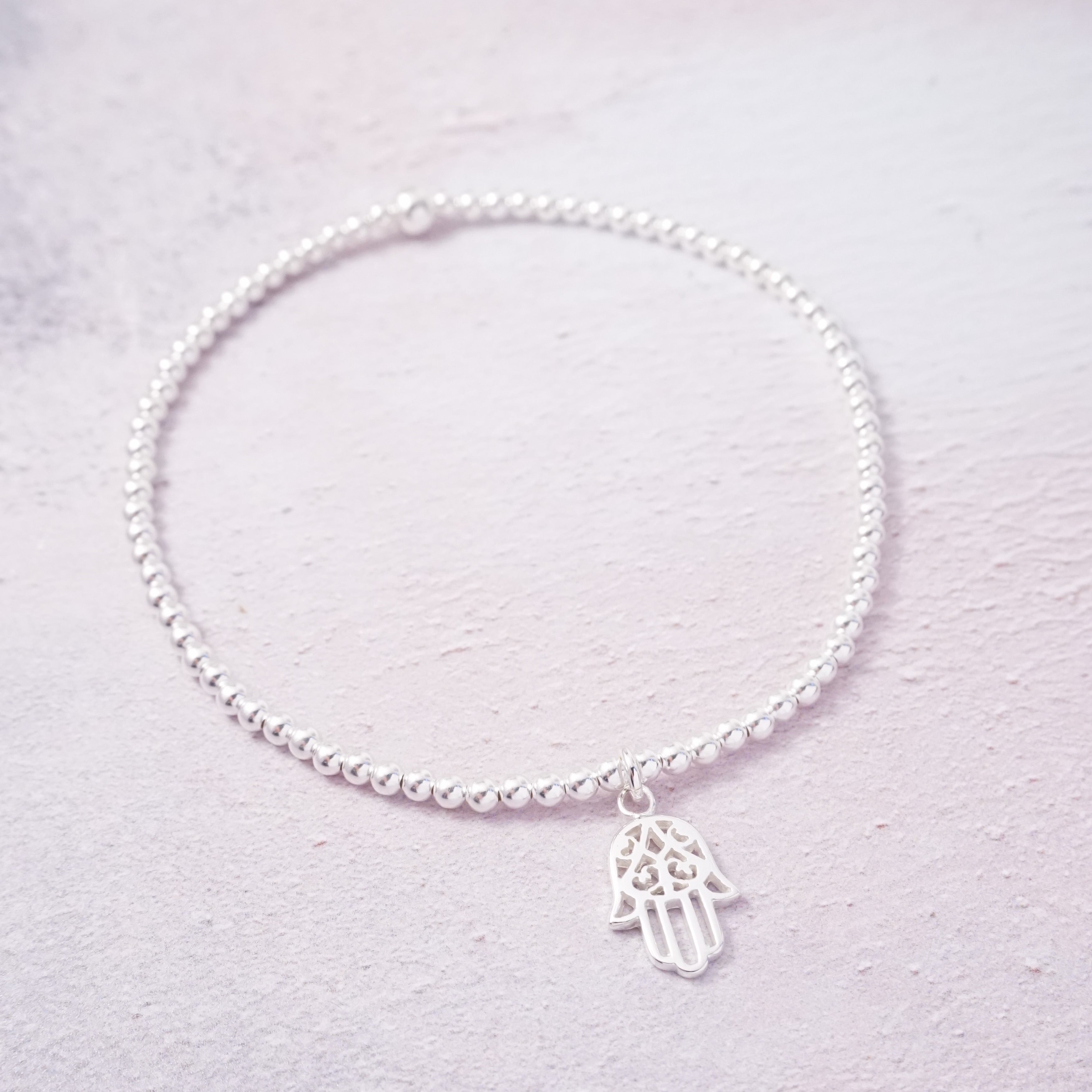 Sterling Silver Stretch Anklet with Hamsa Hand Charm