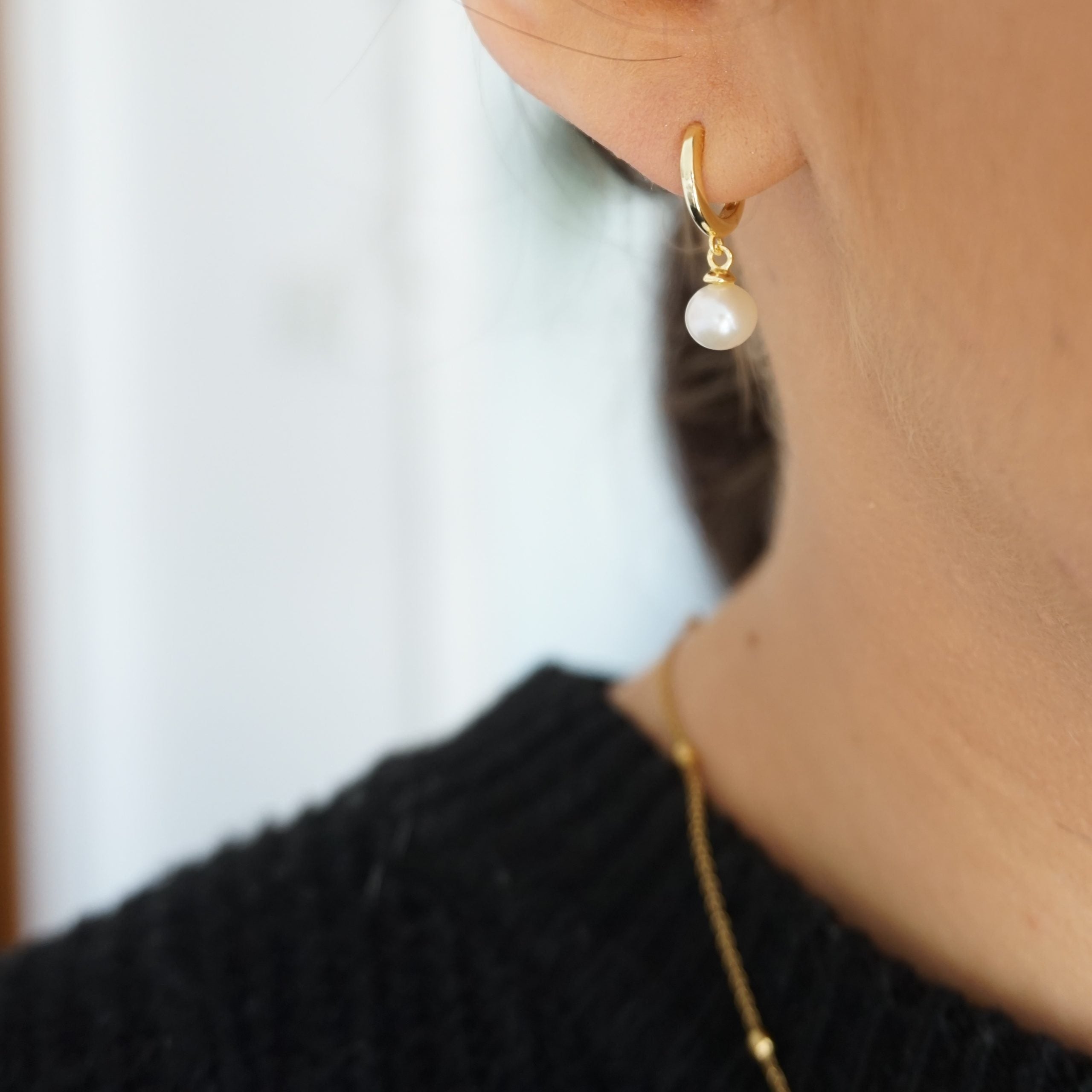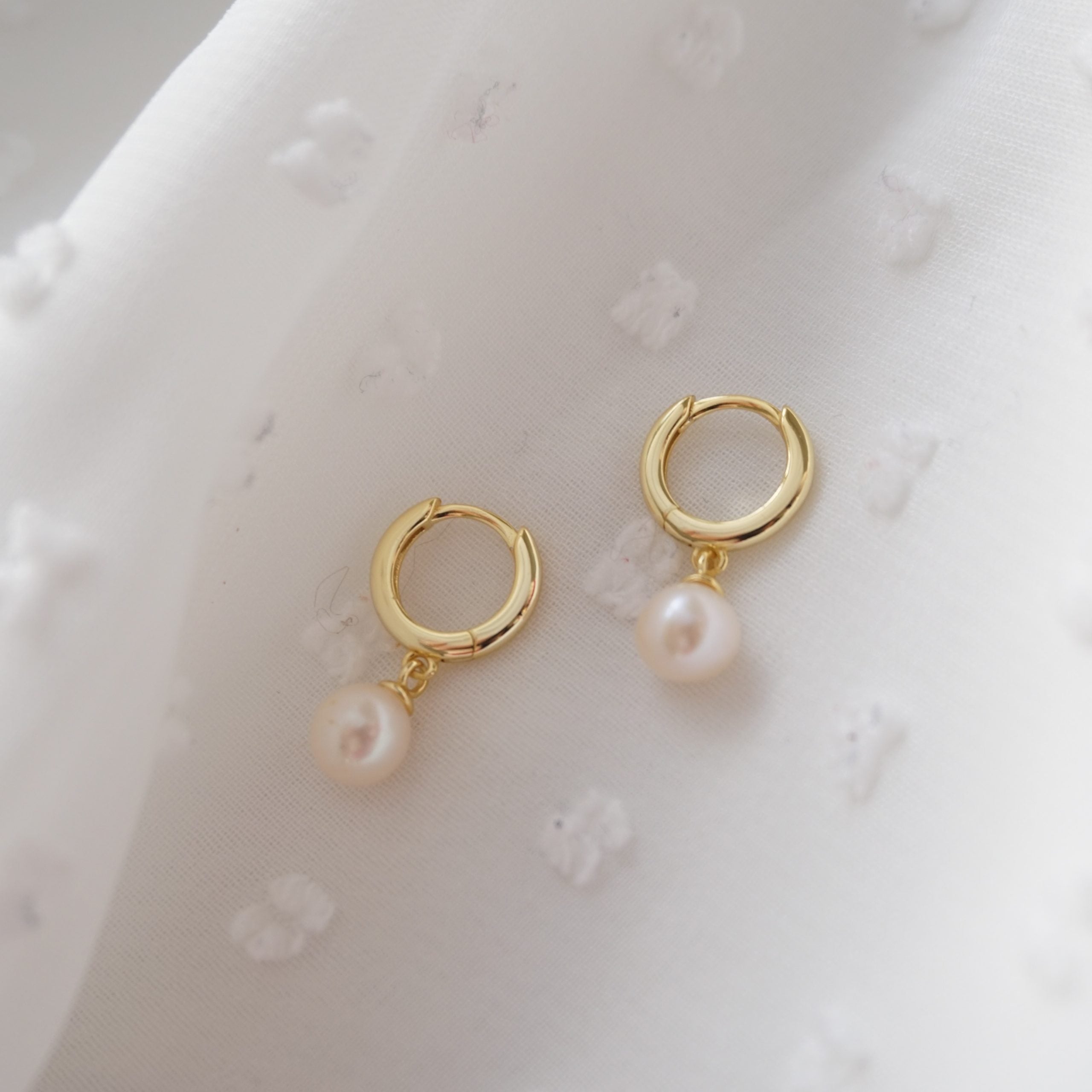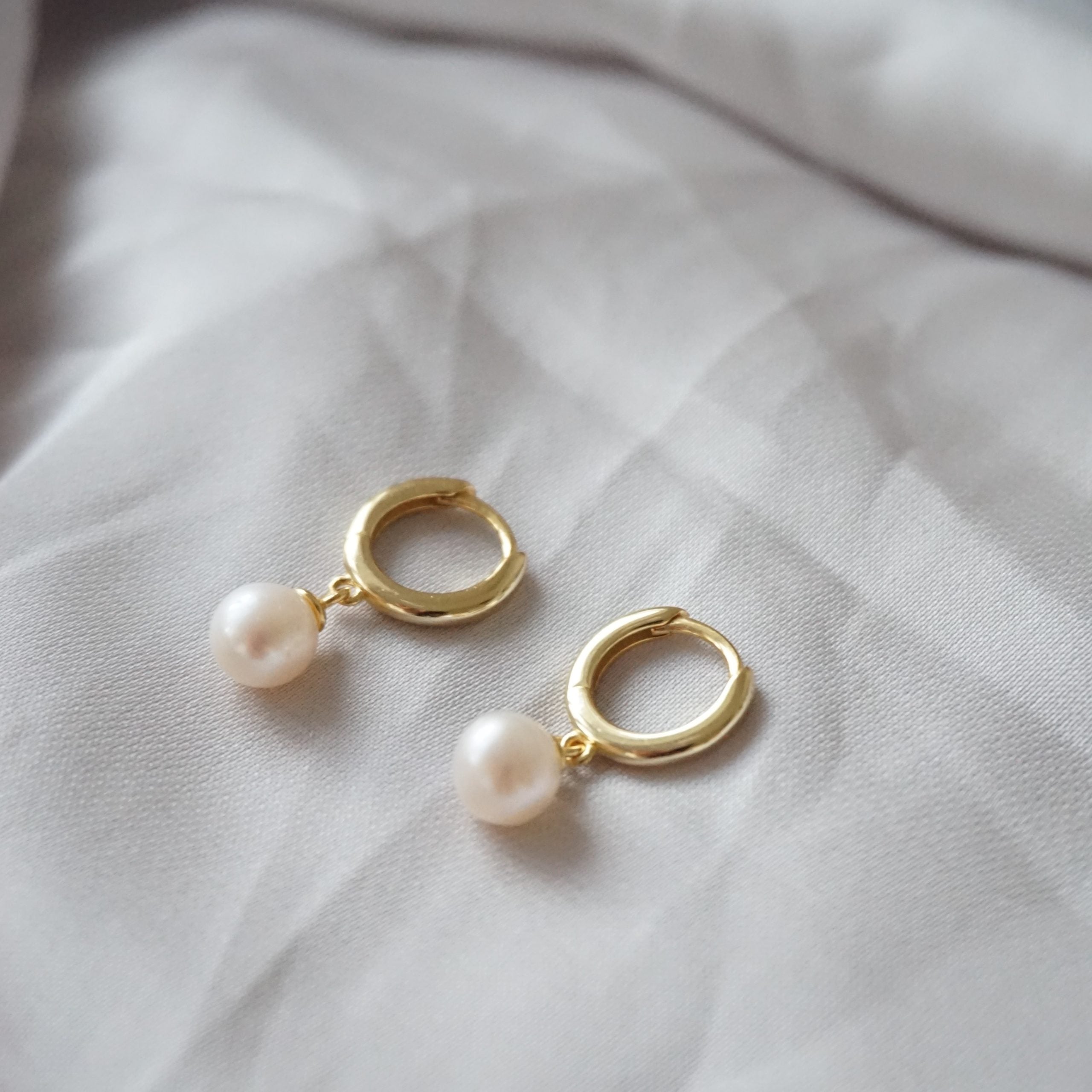 Sterling Silver, plated with Yellow Gold. Pearl.