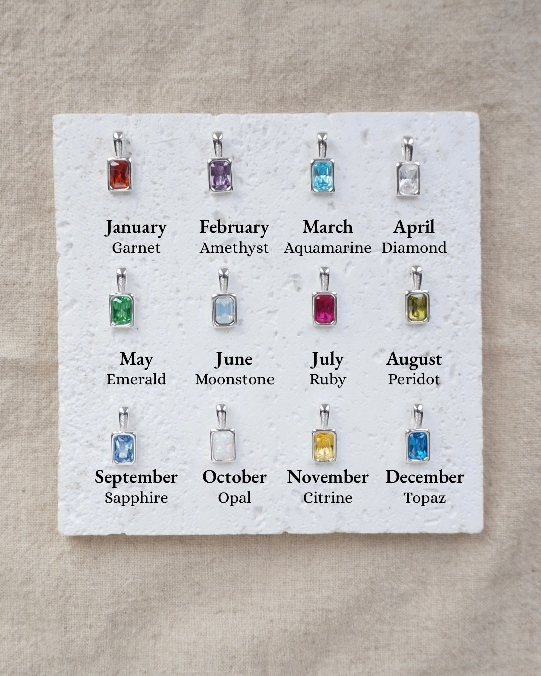 These pendants are set with high quality cubic zirconia stones with the moonstone and opal crafted from synthetic alternatives.