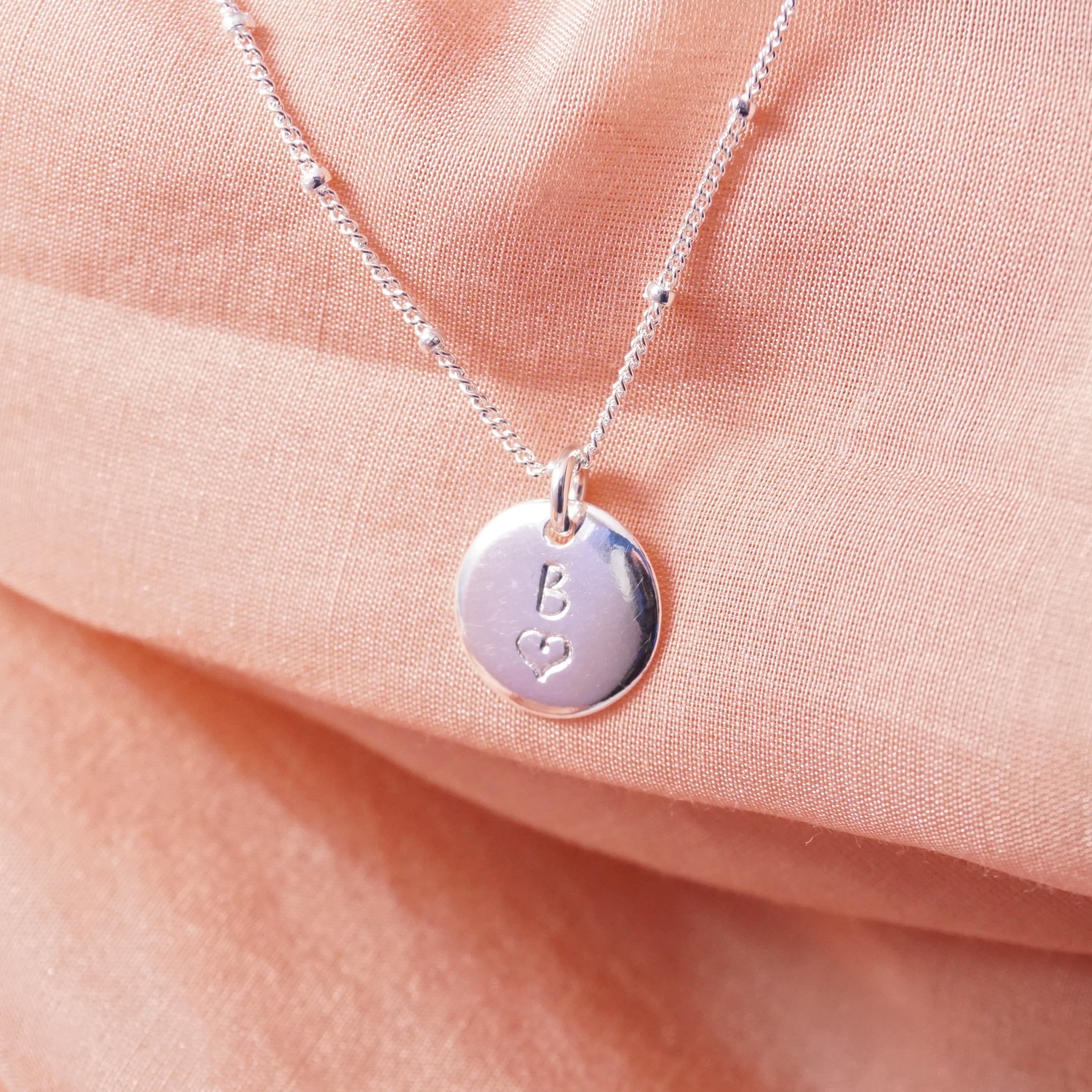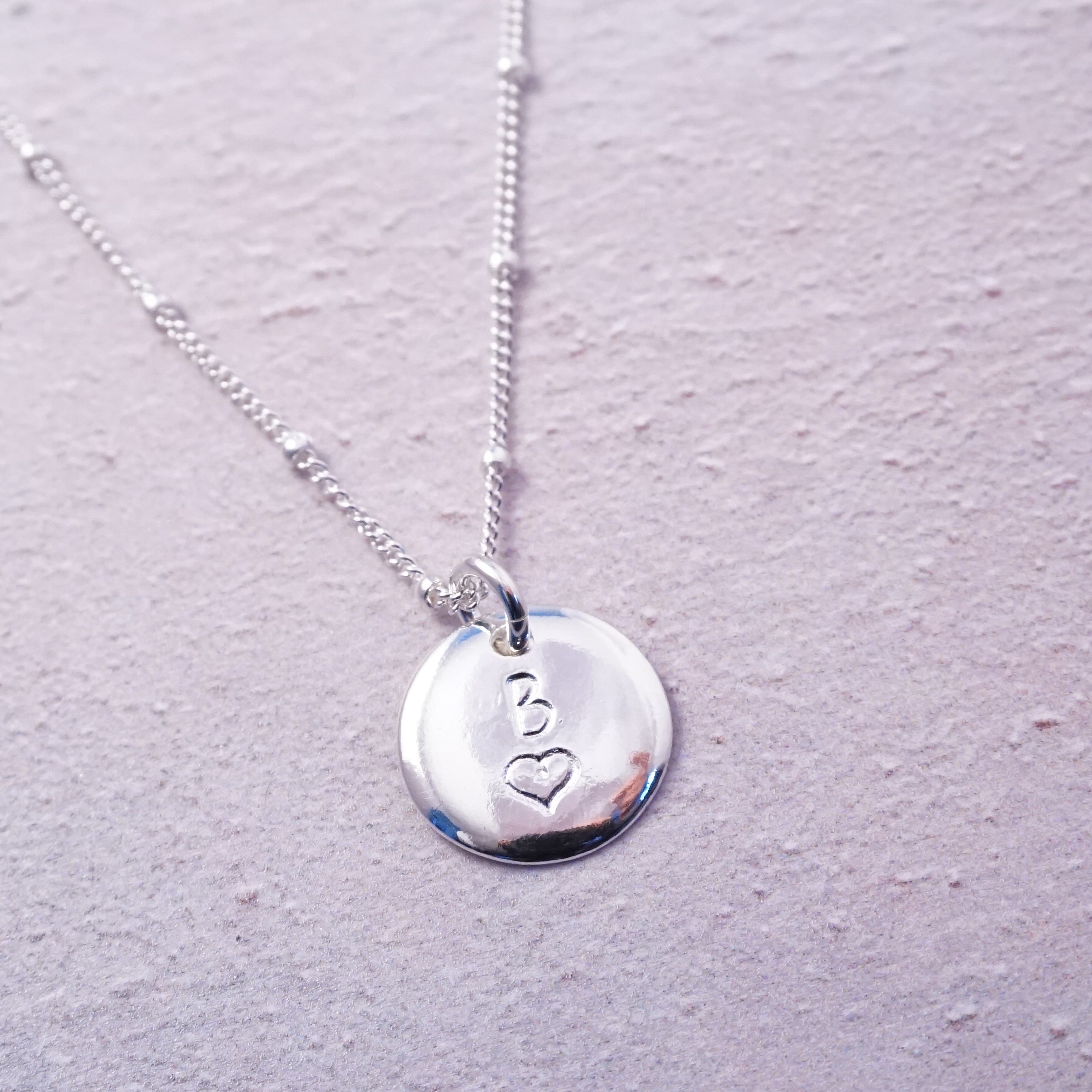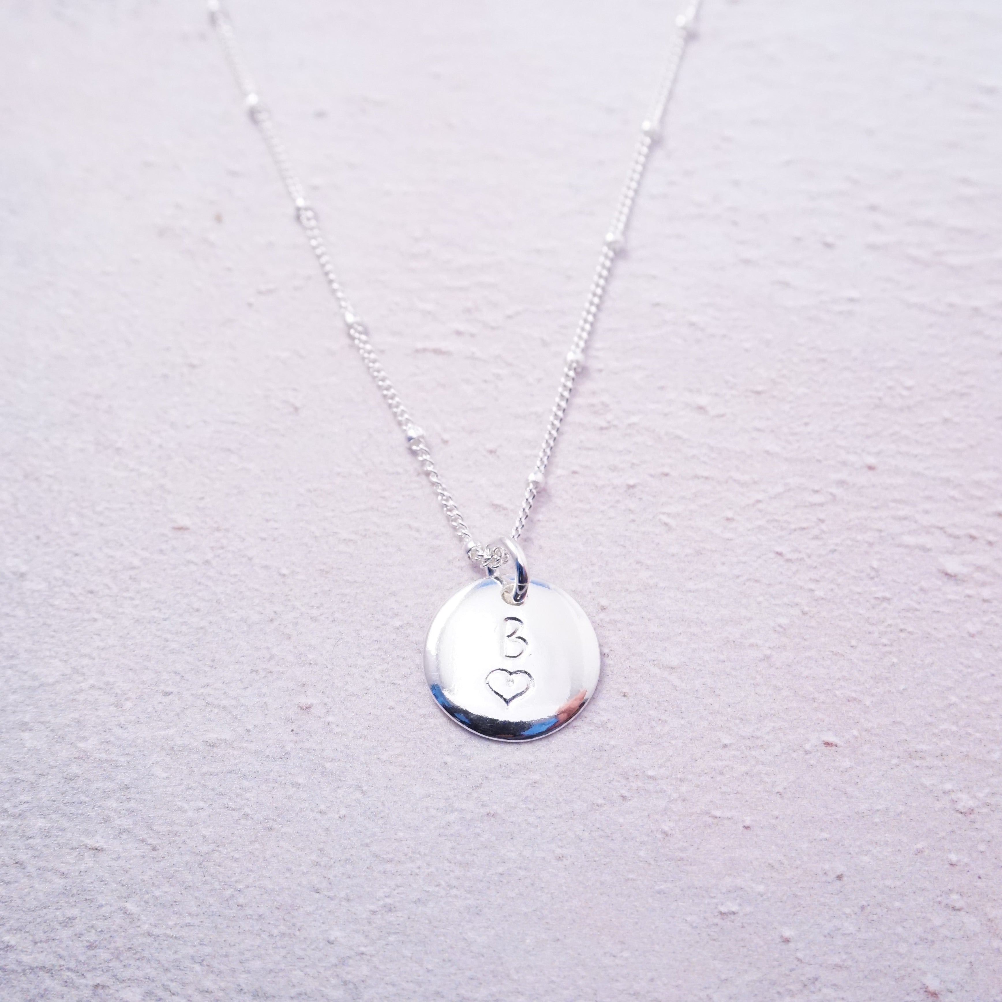 Sterling Silver Initial Heart Stamped Necklace