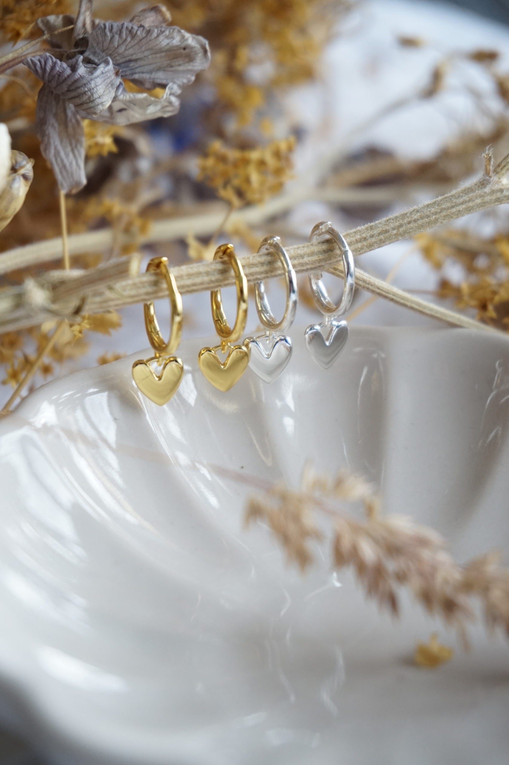 Sterling Silver Heart Hoop Earrings