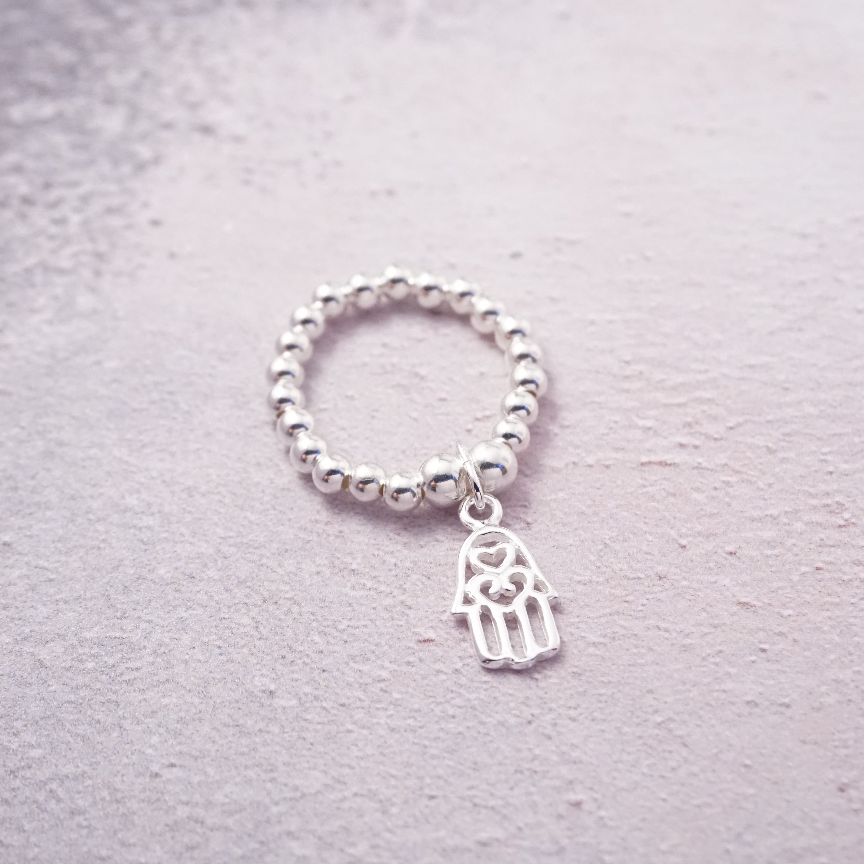 Sterling Silver Stretch Ring with Hamsa Hand Charm