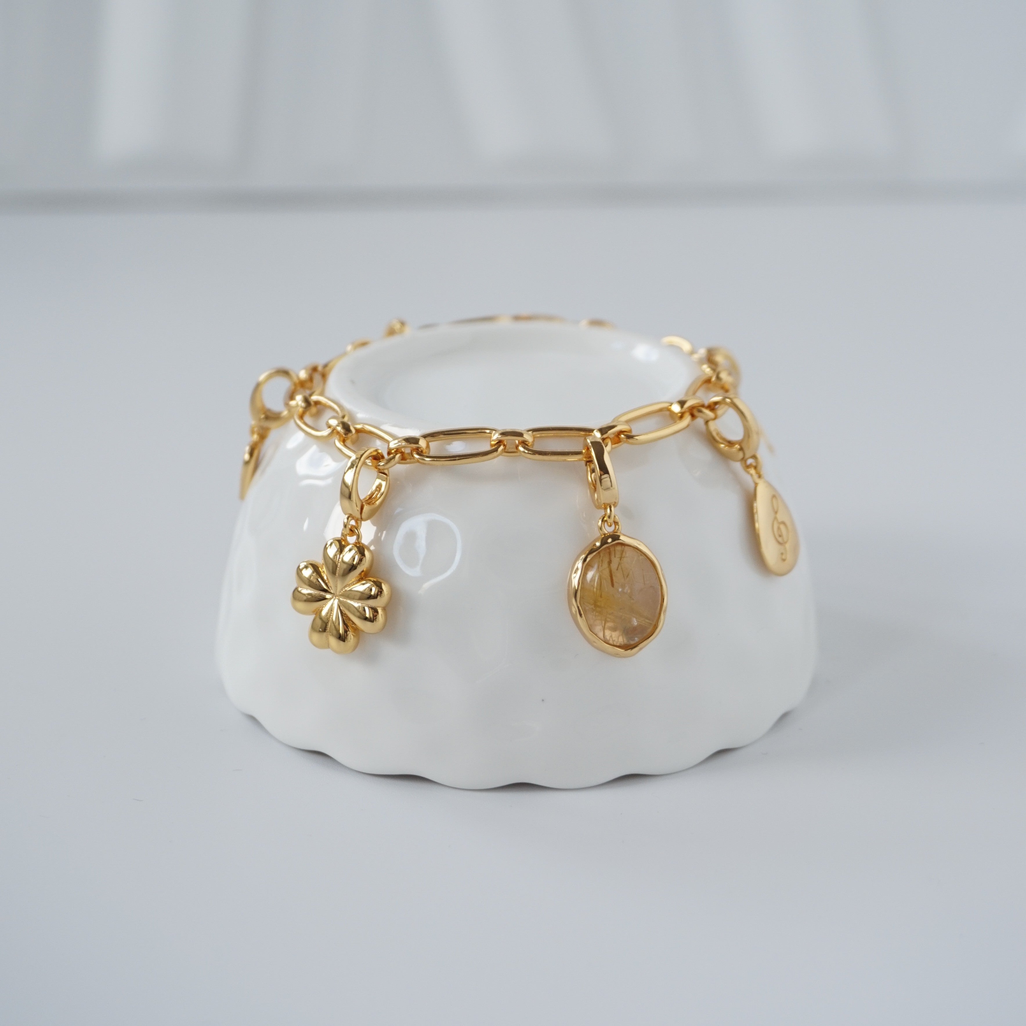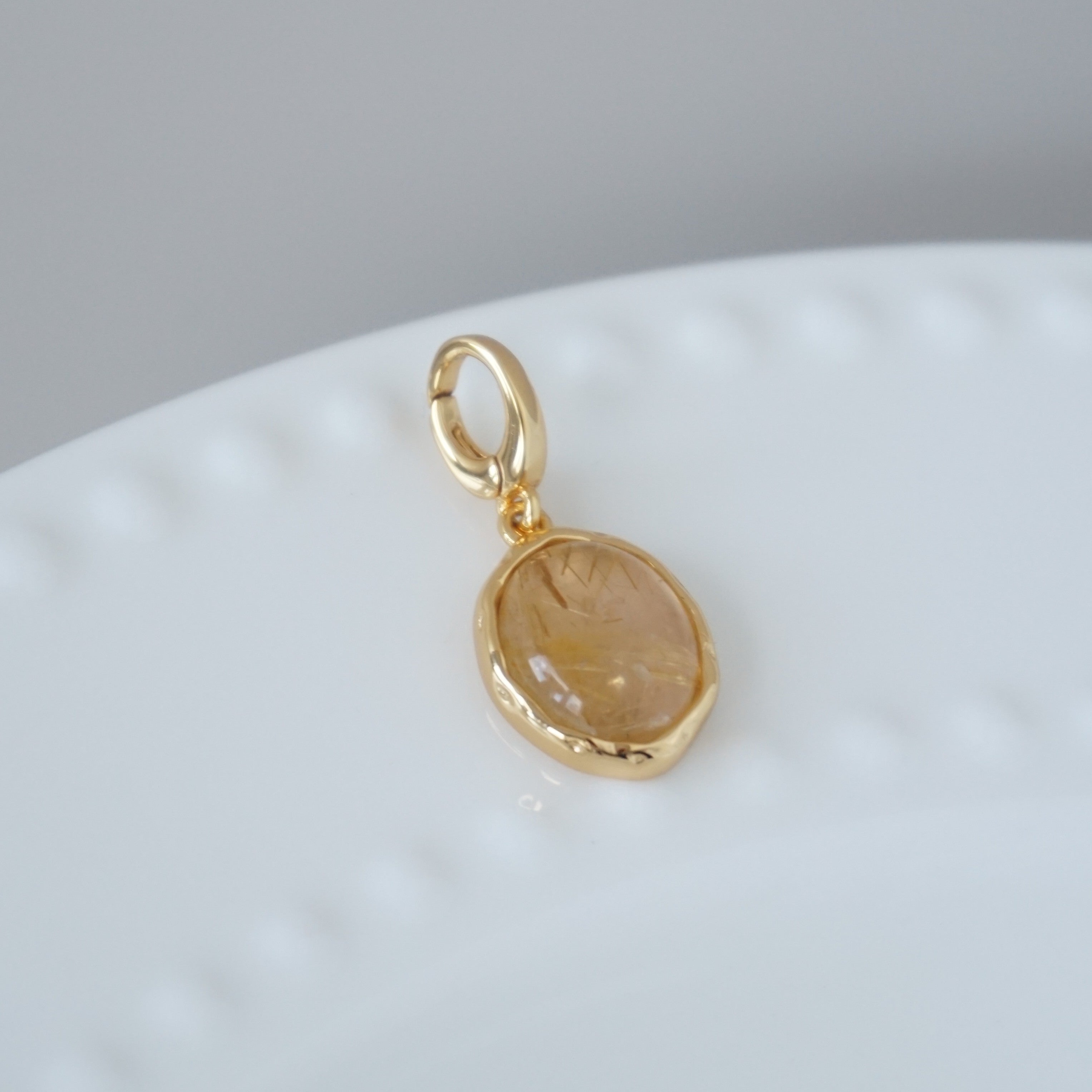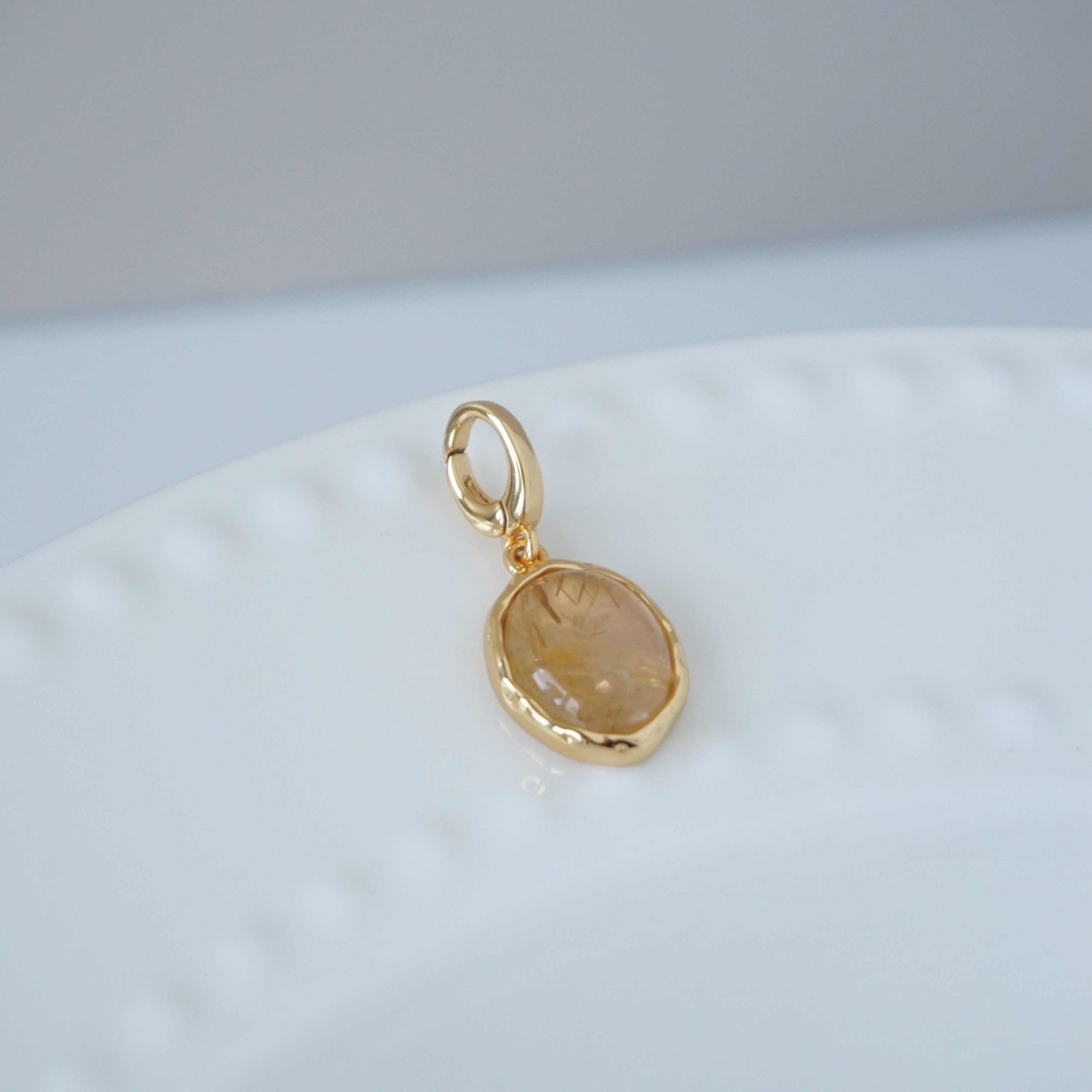 925 sterling silver 18k gold plated 2.5 microns e-coated. Rutilated Quartz.