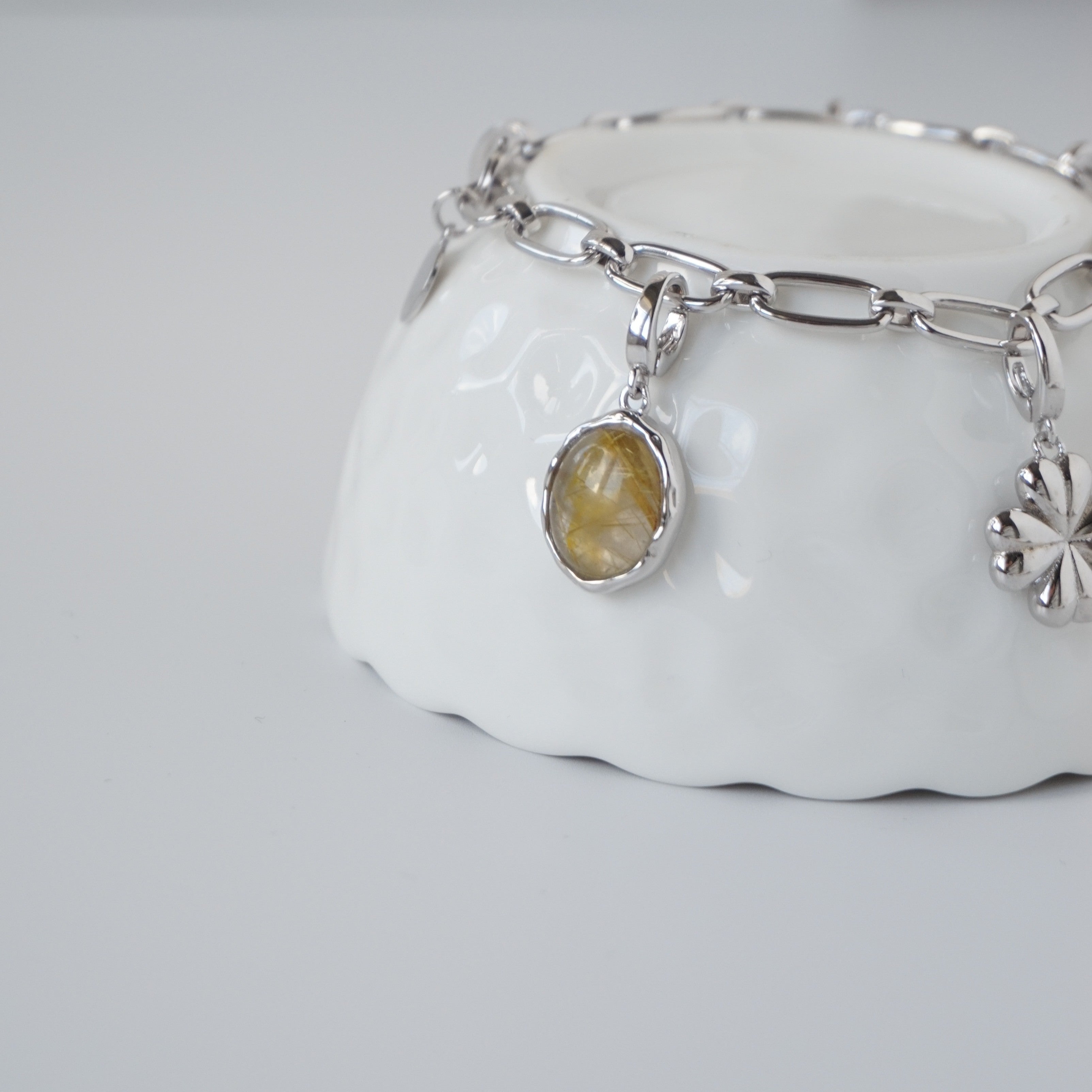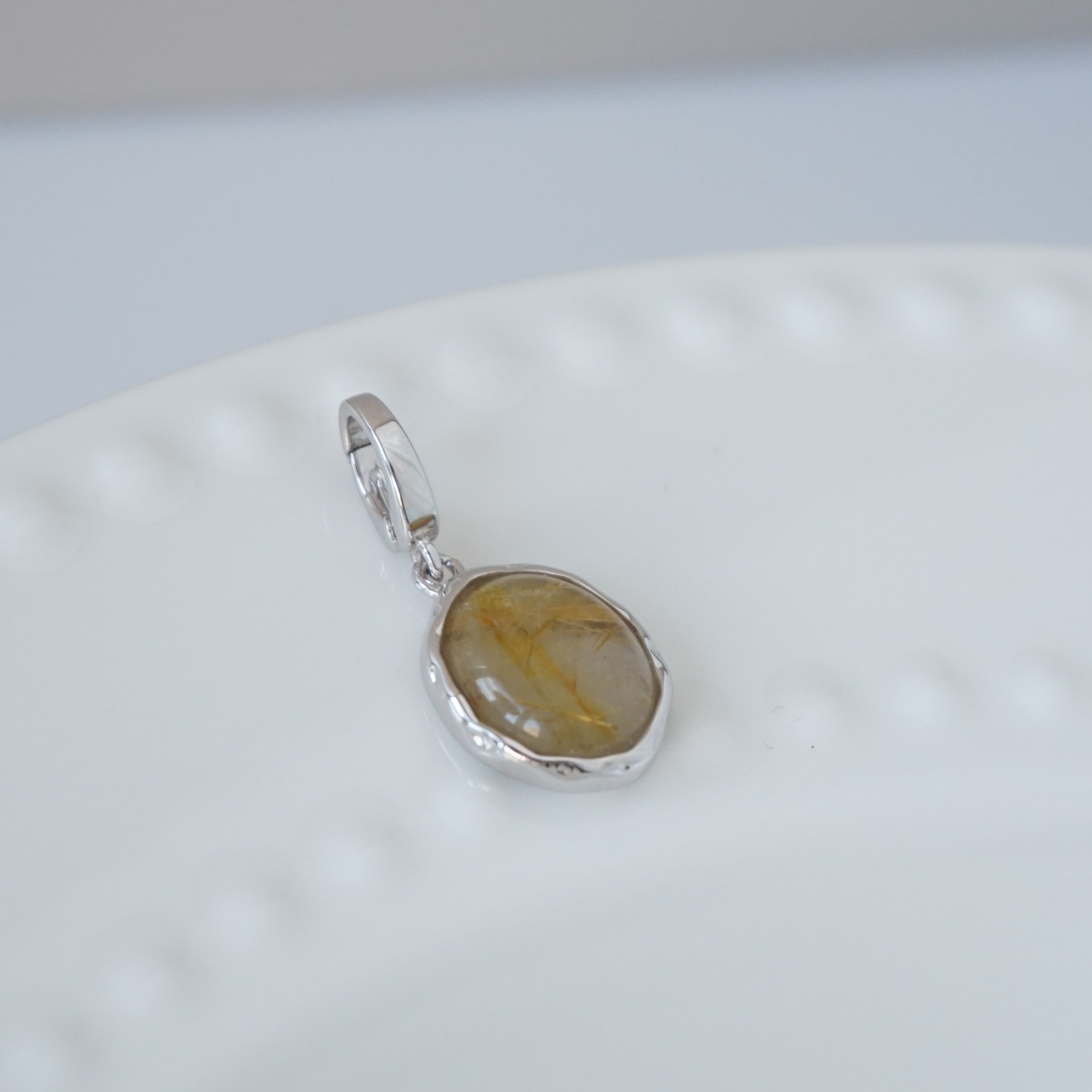 Sterling Silver Rhodium Plated 0.1 Microns. Rutilated Quartz.