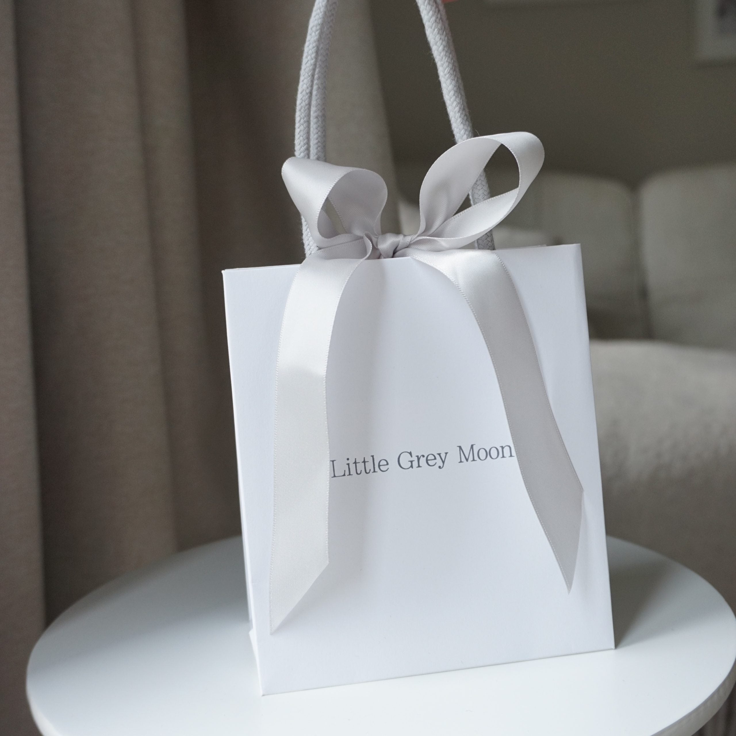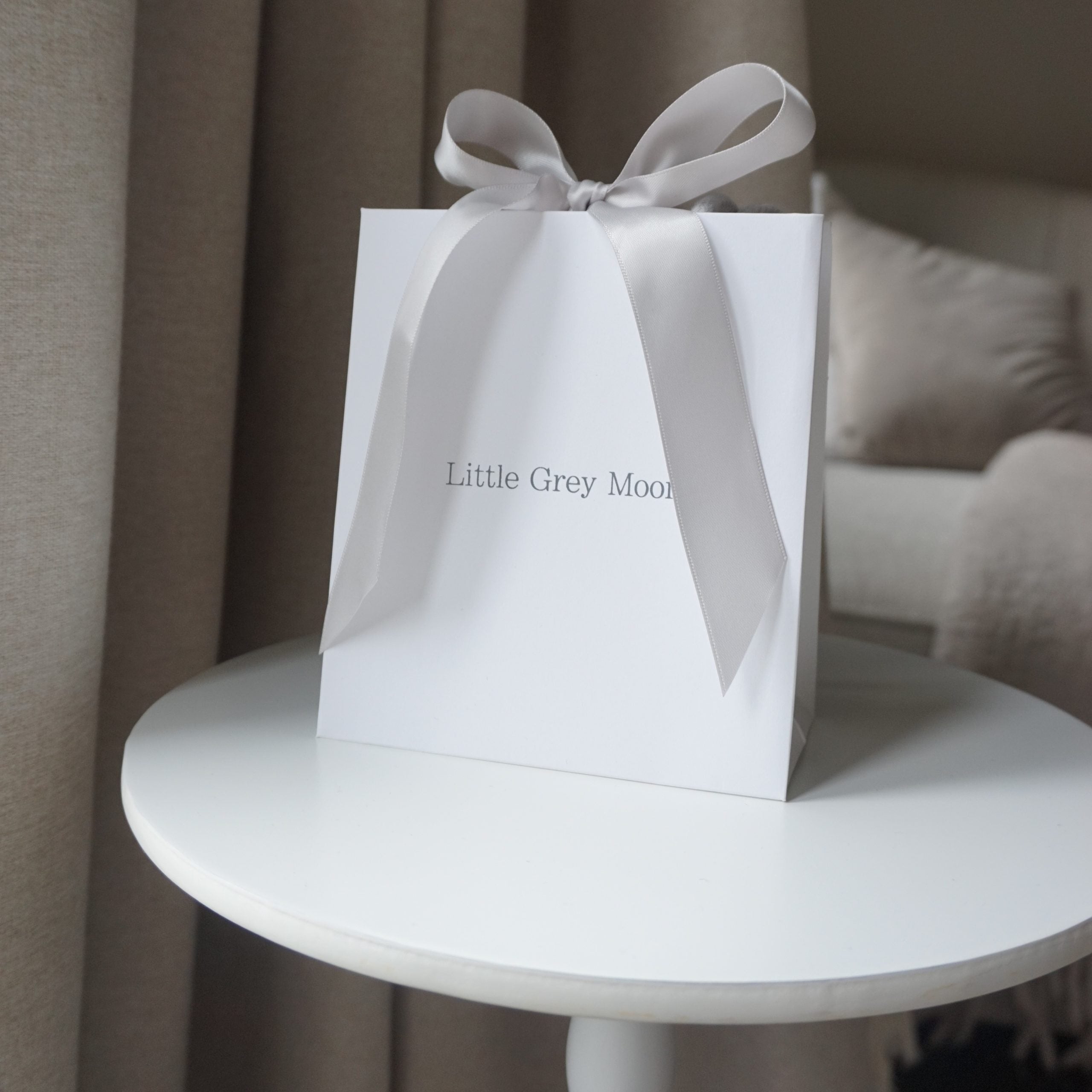 Our beautiful luxury white gift bag with fabric handle is the perfect addition to your Little Grey Moon order - especially if your purchase is a gift for someone special.